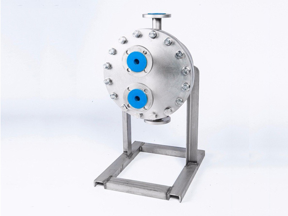 食品級板殼換熱器是以板管作為傳熱元件的換熱器,又稱薄片換熱器。它主要由板管束和殼體兩部分組成。將冷壓成形的成對板條的接觸處嚴密地焊接在一起,構成一個包含多個扁平流道的板管。許多個寬度不等的板管按一定次序排列。為保持板管之間的間距,在相鄰板管的兩端鑲進金屬條,并與板管焊在一起。板管兩端部便形成管板,從而使許多板管牢固地連接在一起構成板管束。板管束的端面呈現若干扁平的流道板管束裝配在殼體內,它與殼體間靠滑動密封消除縱向膨脹差。設備截面一般為圓形,也有矩形、六邊形等。